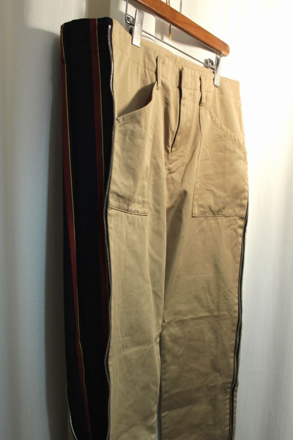 サイドのジップを開けることにより様々なシルエットに変えることが出来ます。中のストライプの生地も良いアクセントに。
