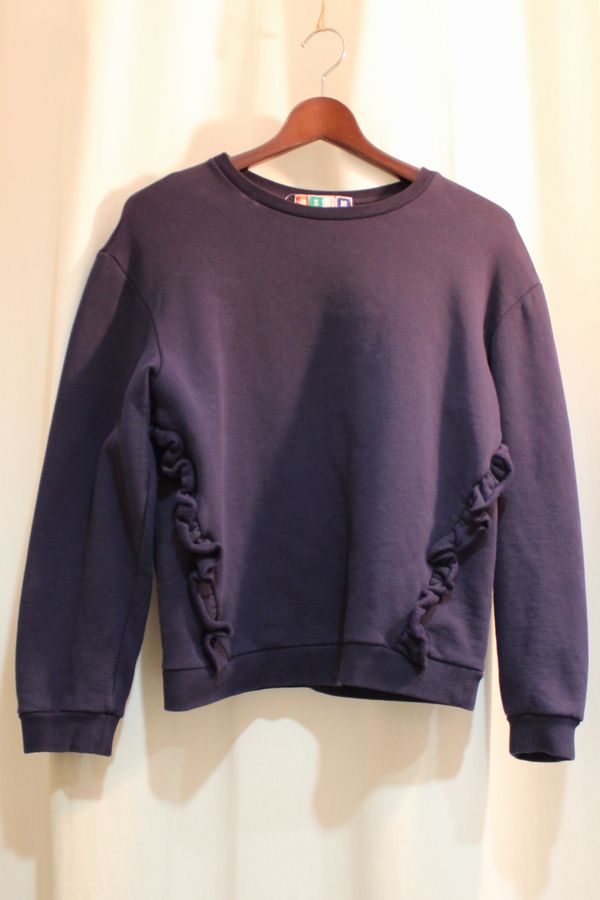 カジュアルな印象のスウェットもフリルがあることによりフェミニンになります。