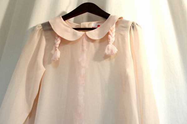 襟元はフリルになっており、とっても可愛らしい仕上がりになっております。