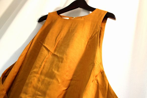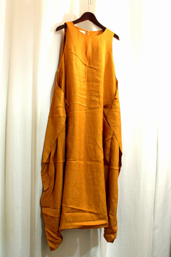 リネン特有の軽やかさと、ハリを活かした直線的なシルエットが魅力です。