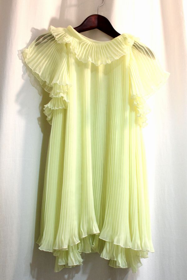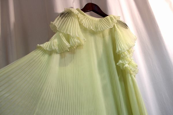 とても柔らかな素材で細かいプリーツが印象的な一着。