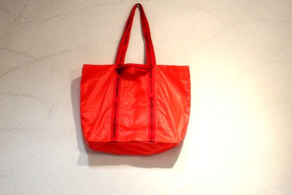オリジナルのロゴテープを使用したトートバッグ。