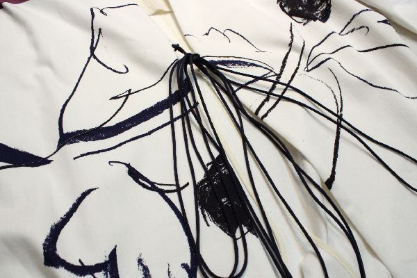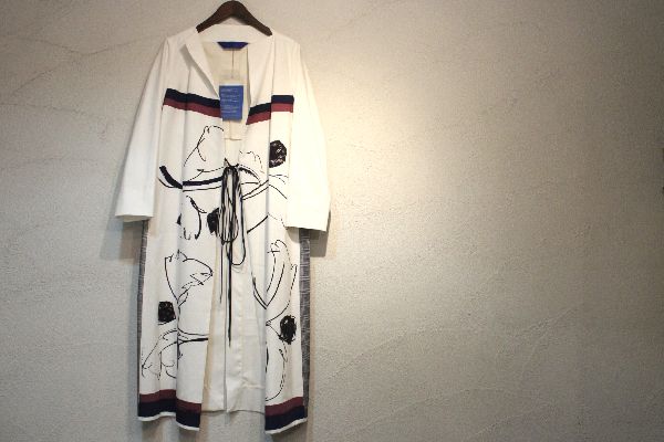 フロントに大胆なプリントを施したコートドレス。