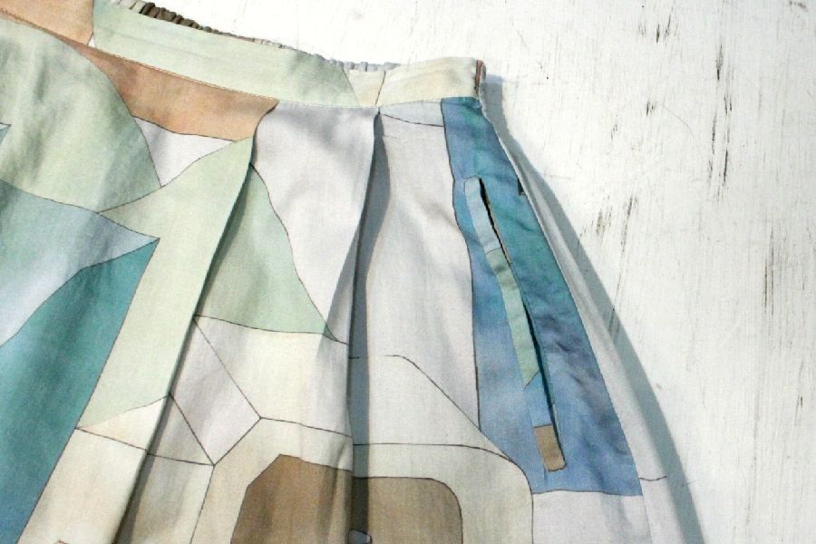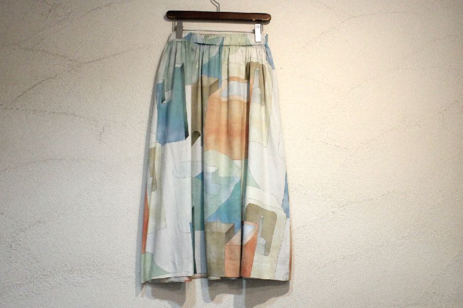 プリントを施した個性的な柄でパステルカラーで仕上げることでやさしい印象に。