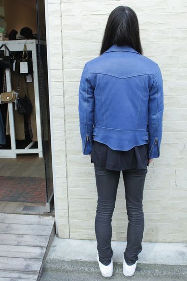 BLACKMEANS ライダースジャケット 2014/01/27 タイトなシルエットで細身のボトムスとの相性も抜群です ブルーの色合いも最高の1着 ブラックミーンズらしい大変手の込んだ加工にも注目です YADA 身長175cm、体重65kg