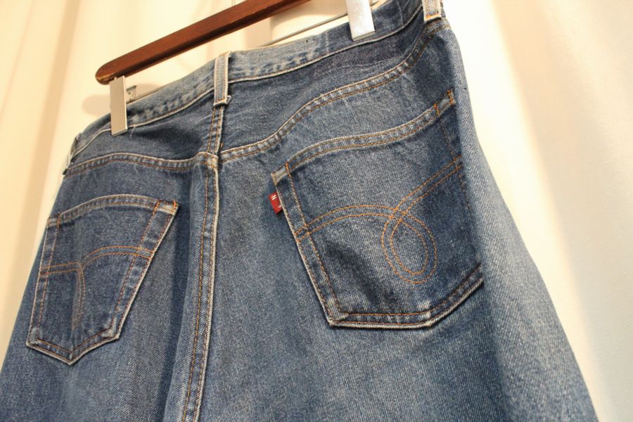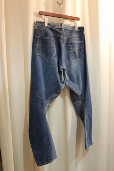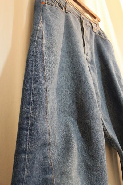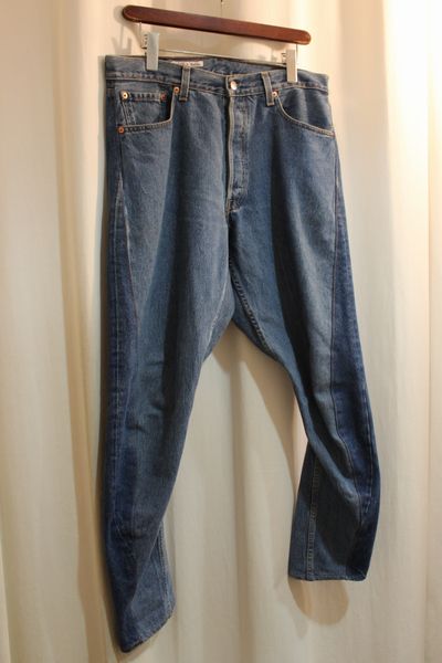 古着のジーンズを解体し、立体裁断のようなデザインに再構築。